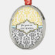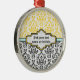 Damask pattern black white yellow aqua ornament. The upper part is of yellow and white damask pattern and the bottom part is of black and white. An aqua stripe separates the two parts. Your text is typed on an elegant label with white and yellow outline. A great keepsake for special occasions weddings, birthdays, anniversaries.
