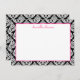 Keep in touch with friends, send a note of thanks or jot down a special thought on these personalised flat note cards. These pretty notes feature a damask pattern and your custom text. Use the template form to add your personalisation. The colour and font can be changed by using the "customise further" feature.