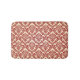 This rug is just as pictured! Vibrant Red and very soft material, nice to step in out of the tub! Matches my set of accessories and shower curtain! A must have to add some whimsy to your bathroom! Very nice, vibrant and clear print! Beautiful!