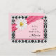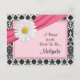 The text on this shasta daisy, pink ribbon, black and white damask recipe card for the bride to be is fully customisable. You can change it using the personalise option. For more extensive changes to the postcard, including changing the font, font colour, or font layout, choose the customise option. This daisy recipe card can be enclosed in the matching bridal shower invitation so that bridal shower guests can fill out the back with their favourite recipes and bring the card with them to the shower as a wedding keepsake for the bride to be. You could also use this in a birthday party invitation by changing the text on both the invitation and this card. The matching invitation is shown below.