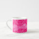 Damask patterned expresso mug. Show your love for coffee and fashion with this pretty unique subtle "Kangaroo Paws" and hearts damask style patterned mug. Reads: "Fashionable Coffee Diva". The "Kangaroo Paw" is a striking native plant from Western Australia this pattern was inspired from the "Kangaroo Paws" interesting structural nature. This original classic but subtly different style mug has been designed exclusively by Sarah Trett.