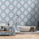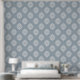 A handmade damask design wallpaper in cadet blue-grey. From soft pastel hues to bold dyes, choose a shade that reflects your style, and bring a vintage touch to your modern home with this original design from The Ink Imprint