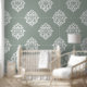A handmade damask design wallpaper in pale olive. From soft pastel hues to bold dyes, choose a shade that reflects your style, and bring a vintage touch to your modern home with this original design from The Ink Imprint