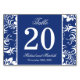 Damask Sides Table Numbers (Dark Navy Blue / White)...These elegant and classic damask table numbers are the perfect addition to your wedding reception decor. They will easily guide your wedding reception guests to their tables. The design features the table number, the names of the bride and groom, and the date of the wedding. See WindyCityStationery.com for our complete line of "Damask Sides" table numbers in a wide range of colours as well as matching "Damask" postage stamps, invitations, stickers, and more.