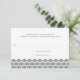Simplicity is key on this damask design wedding response card. Clean typography with call outs in bright pink blend with an ornate damask border on the bottom. The couple's initials are highlighted on the reverse along with the event date. Available in alternate colours with matching products.