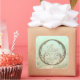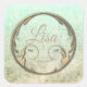 Victorian script with a scroll floral design in mint green, cream and gold. It's embellished with a victorian frame in bronze to frame your name or initial.