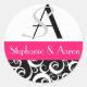 Damask Wedding Monogram in Black and Hot Pink Classic Round Sticker