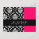 Damask Wedding RSVP Card Fushia