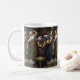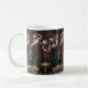 This custom fine art classic coffee mug features a high-resolution tiled reproduction of The Danaides by John William Waterhouse, oil on canvas, 1903. This vintage Pre-Raphaelite painting depicts a procession of women carrying and pouring large urns of water into a basin from which water pours from the bottom. Waterhouse paints the scene with a near classical sense of low relief under a patina of deep, rich colour, particularly the deep ultramarine blue robes. The Danaides in classical mythology were the daughters of Danaus who were forced to marry the sons of Aegyptus, a mythical king of Egypt. All but one of the fifty women killed their grooms. As punishment, the gods condemned them to the underworld of Tartarus, where they eternally pour water into a perforated basin, a classical symbol of futility. The Waterhouse coffee mug is a unique, artsy gift for any art lover or fan of Pre-Raphaelite painting.