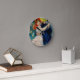 Clock featuring Pierre-Auguste Renoir’s oil painting Dance at Bougival (1883). A beautiful woman in a pink dress and red hat dances with a handsome man in a blue suit. A great gift for French art and Impressionism collectors.