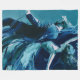 An expressive abstract composition capturing two figures suspended in motion, painted in layered shades of blue and teal. The contrast between stillness and movement evokes intimacy, distance, and the fleeting nature of connection, rendered through bold brushwork and fluid form.