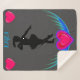 Ballerina dance Sherpa blanket in dark grey with pink hearts & custom name.