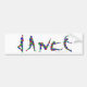 This dancer art multicolor bumper sticker has the word "Dance" spelled with dancing silhouettes of people in dance poses. One is a dance jump, one is ballet, one is jazz. The striking design is great for dancers and dance lovers. Makes a great gift for dancers, dance teachers, dance students, or dance instructors. Put one on your car to show the world your love.