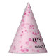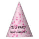Add pizazz to your dance party with these pink and black party hats. All text is customisable. Part of a collection from Parcel Studios.