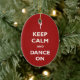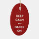 A play on the vintage British slogan. A silhouette of a dancer appears with the text "Keep Calm and Dance On" on an authentic deep red background. The back is blank for you to personalise with a name, date or message. Perfect for a dance student or any dancer. This design is also available on a tote bag, poster, an iPhone case and a card, in my Zazzle store.