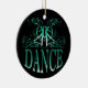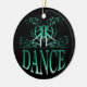 The striking dance design in green against a stark black background on this ornament is sure to attract attention. This wonderful ornament is perfect for any dancers or dance teachers. Back is left blank for you to add your own message to the recipient, if you like. Simply use the "Customise it!" button to access the online product editor to personalise this gift. ©Studio Miyabi www.Gifts4Dancers.com