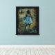 Come dance the night away with this beautiful lady who is just waiting for her next dance partner. The wonderful combination of blues and greens is sure to compliment you room. This fun mixed media creation was made with paper, acrylics and vintage jewellery and cloth flowers. Now you can enjoy a beautiful canvas print for your own home.