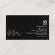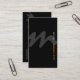 This elegant bold script dancer business card features a large bold script dark grey monogram right in the middle of the card over a black background. Your name and title appear vertically on the right edge of the card in orange and white. Your other contact details including your business logo appear on the back of the card. The back of the card also features a smaller monogram letter in the same script font. Perfect for artistic, entertainment, showbusiness, performance, performers, talent themes.