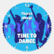 Stylish colourful TIME TO DANCE Round Sticker, showing graphics of dancing silhouettes. Colour scheme is dark blue, cyan blue, mauve and white. Text reads THERE'S ALWAYS TIME TO DANCE in white typography. The text is CUSTOMIZABLE so you can replace with text or name of similar length. Available in other colours.