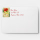 Holiday envelope with an insert of three little angels dancing and hanging from a Poinsettia flower. The return address is customisable.