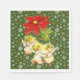 Dancing Baby Angels hanging from a Poinsettia flower with gold and white snowflakes falling on holiday party napkins.