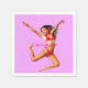 Black-haired red bikini-wearing girl leaps high dancing to customise, personalise by changing to your name