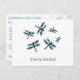 This blue dragonfly design is ready to add your event details, guests etc. The dragonfly are dancing around, in a party mood! They are from my original glass painting. Copyright Annabel Potter