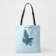 A simple, blue silhouette-like image of a lively raven (Corvus corax) done in Norse-Celtic style, superimposed on a snowy background image. Customise by adding your own text.