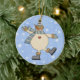 Whimsical snowman is out dancing in the snowflakes. Pale blue background with white snowflakes. Back side of ornament also has the snowflake background. Can be personalised with the year or a special message on the back!