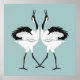 This illustration features a pair of red-crested cranes in a dance for a mate. Cranes symbolise happiness, good luck and longevity. Click the custom button to change the background colour.