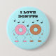 A chocolate doughnut and a strawberry doughnut are having a delightful time dancing. We should all dance more. You can alter the background colour and make various alterations to the letters to this fun button. Customisable. Original work; © Sharon Lee Hudson. All rights reserved.