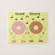Let's all dance like the strawberry and chocolate doughnuts! They are dancing and just enjoying life. Funny and sweet, these doughnuts just might bring a smile to the face of the one who receives this puzzle. Customisable. Original work; (c) Sharon Lee Hudson. All rights reserved.