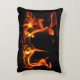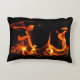 This accent pillow depicts the energy of fire in a wood burning stove. The orange, gold and yellow flames appear as joyful dancing characters. They are set off by a black background. The image is repeated on the back.
