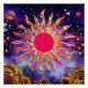 “Dancing Fire of the Cosmos” The Sun. The sun’s hypnotic swirls and golden flares give the illusion of movement, as if the solar flames are alive. An intricate masterpiece celebrating energy, warmth, and celestial balance with colours of red, orange, yellow and blue.