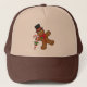 An illustration of a happy dancing gingerbread man with a top hat and a candy cane. During Christmas celebrations, gingerbread and candy cane are always present. Baking a gingerbread is a way for bonding with the family and making children happy.
