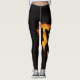 Girl silhouettes in front of heart shaped flames printed on black leggings,
