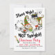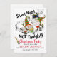 Funny Christmas party invitation with dancing gnomes. Christmas invite features the phrase "Silent Night NOT Tonite"