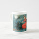 A beautiful vintage Halloween Bone China mug featuring a witch dancing with a cat and a pumpkin character under the moon.