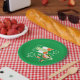 These are cute paper plates for St. Patrick's Day or for any Irish celebration. They feature a leprechaun in green and orange who is dancing a jig. Beside him is a green, white, and orange flag with the text IRISH across it. Scattered green shamrocks complete the image, which is placed on a bright green background. Festive and colourful! Be sure to see the matching paper napkins in our store. *Clip art used in this design is copyrighted by Encore Software, Inc., which permits use to its licensors. All rights reserved.