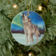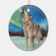 A lonely wolf is howling under the colourful northern lights. From "Dancing Lights", Morgane's original acrylic painting. For all animal lovers.