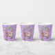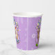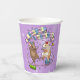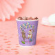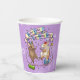 Cute dancing mice on paper cups. Use "Personalise this template" to tweak the "Rachel's 12th Birthday Party" text and create unique, customised party accessories; text changes are reflected on both sides. Cups featuring two happy mice in party hats, dancing as confetti and a ribbon fall around them, with balloons scattered on the floor, with a floral background.