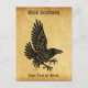 A simple silhouette-like image of a lively raven (Corvus corax, done in Norse/Celtic style, superimposed on an old paper background image, giving it a mediaeval feel. Customisable text reading "Wick Scotland" appears at the top. You may further customise by adding additional text at the bottom.