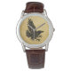 The watch looks really great! Very sharp and well done. The leather band is really nice, though for a man's watch I think it should be longer. Unfortunately, it isn't big enough for my husband's wrist but I will get a replacement because he is very excited to wear it!