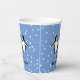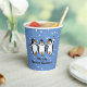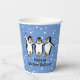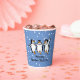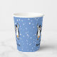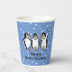 Penguins Dancing in Snow Design Paper Cup with customisable background colour and text.