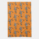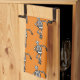 Great Halloween kitchen decor features fun dancing skeleton pattern on orange background.