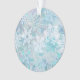 Snowflakes acrylic Christmas ornament features a digital graphic of snowflakes that look as if their dancing in a storm, coloured in mostly shades of blue and white.