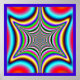 Optical Illusion: Among other things, the spiky design and the interchanging colours give this image a pulsating effect. The deformed shape of the web adds to the optical illusion of a dancing motion.