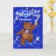 Cute little brown teddy bear with blue bow dancing through blue lights and daisies and holding a glittery like number 7 is a fun 7th birthday greeting for that special little girl in your life with her name on the front of the card. Personalise name on front and inside verse using the templates provided. Original design by Anura Design Studio.