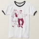 This minimalist t-shirt design features a charming line-art illustration of a couple joyfully dancing together. The fluid lines and vibrant maroon colour convey a sense of warmth, connection, and carefree happiness. Perfect for celebrating love, relationships, and the beauty of shared moments, this design adds a playful yet stylish touch to any outfit.