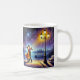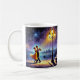 This captures the romantic scene of a couple dancing under the lamppost with the city backdrop.